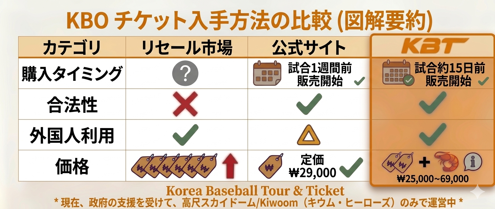 この体験は、KBOのチケットを自分で予約するのが難しい海外からの旅行者のために特別に設計されたプログラムです。